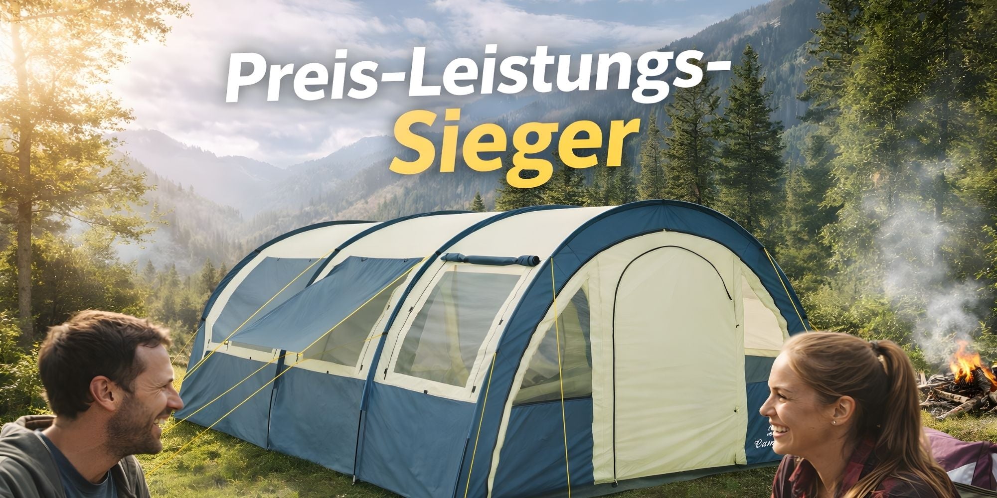 👉 Ein CampFeuer Tunnelzelt wurde als Preis-Leistungs-Sieger ausgezeichnet und erhielt die sehr gute Bewertung 1,3.