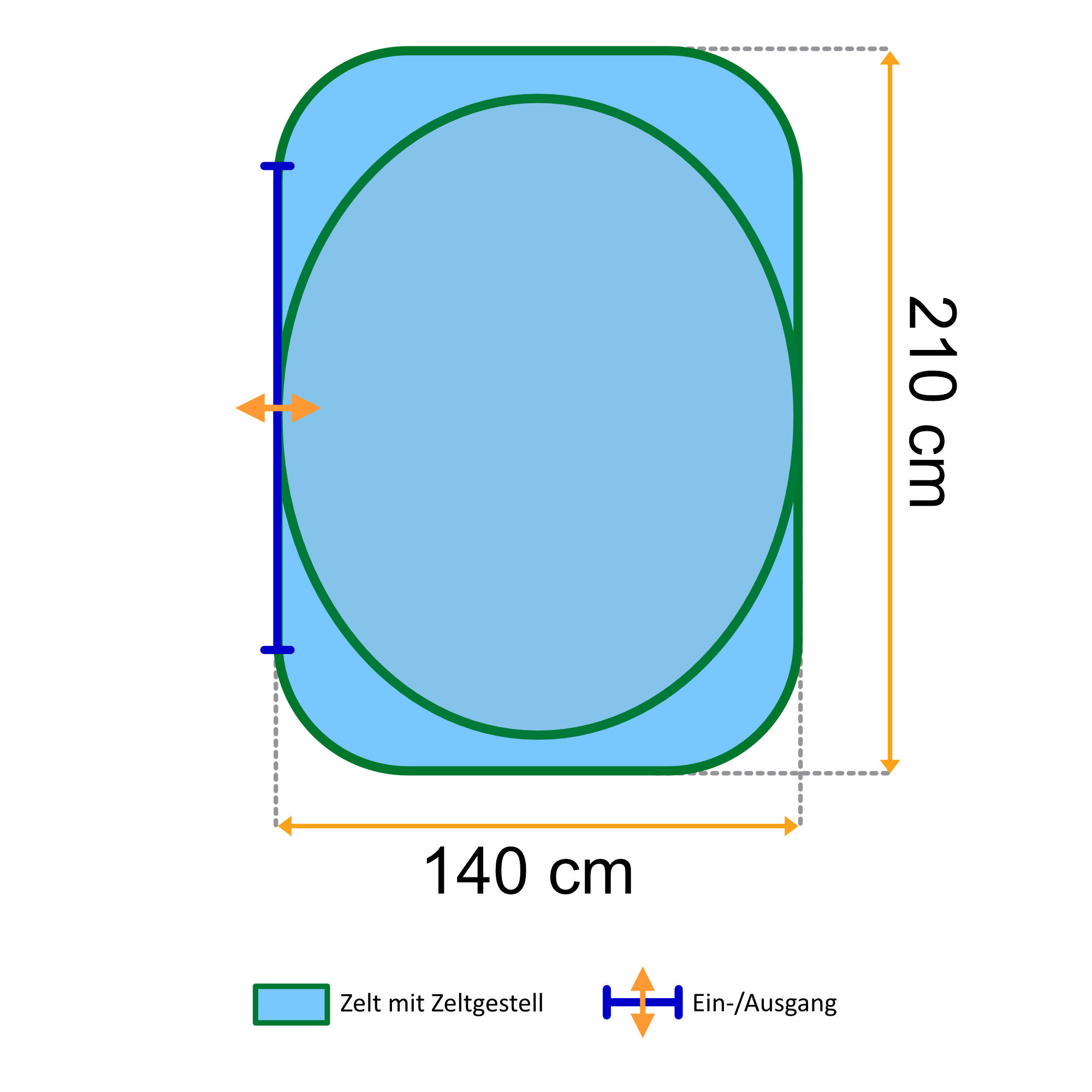 Mit großzügigen Maßen von ca. (B) 210 x (T) 140 x (H) 120 cm bietet diese Windmuschel jede Menge Platz für Handtücher, Taschen und mehrere Personen. Ideal geeignet als gemütlicher Rückzugsort am Strand, am See oder im Park. Durch die Höhe lässt es sich bequem betreten und sorgt für angenehmen Komfort beim Aufenthalt.