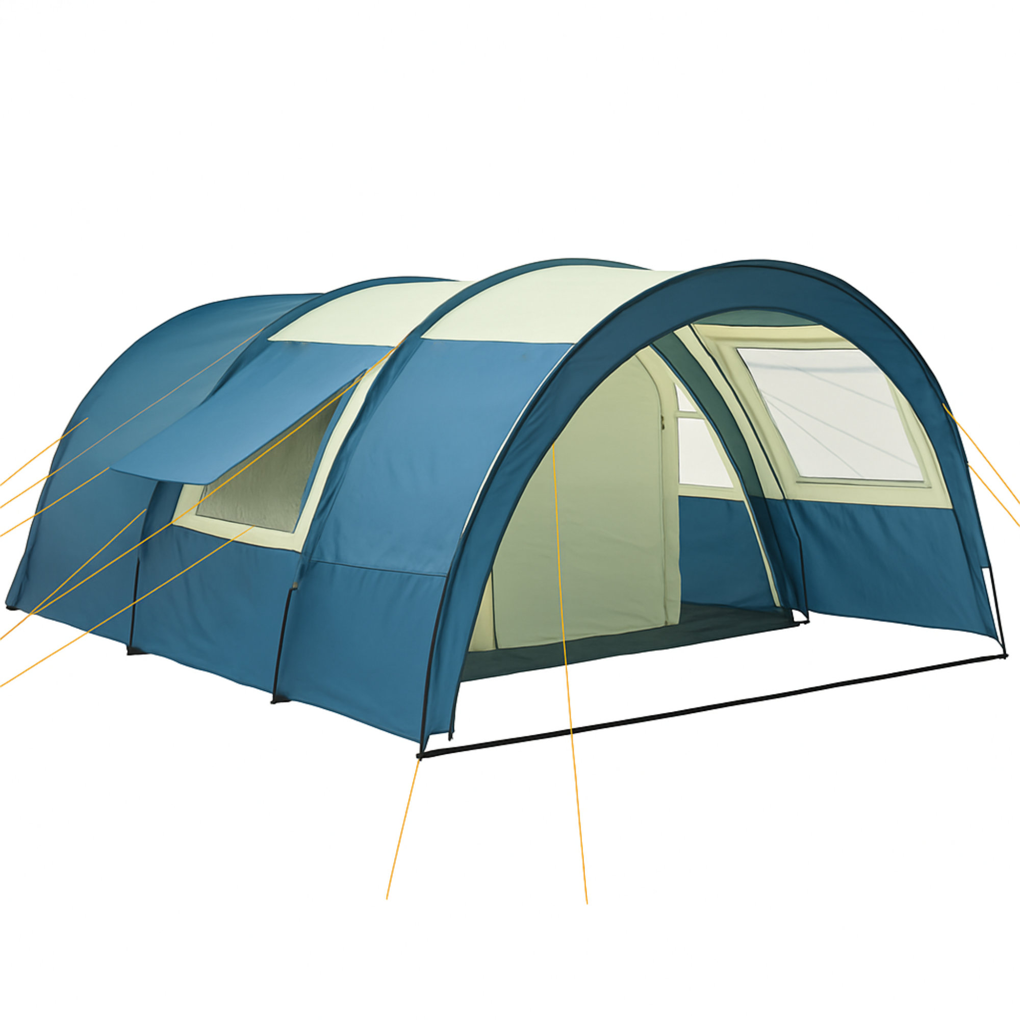 CampFeuer Zelt Multi für 4 Personen, 5000 mm Wassersäule, Blau / Sand, Tunnelzelt mit Vorraum