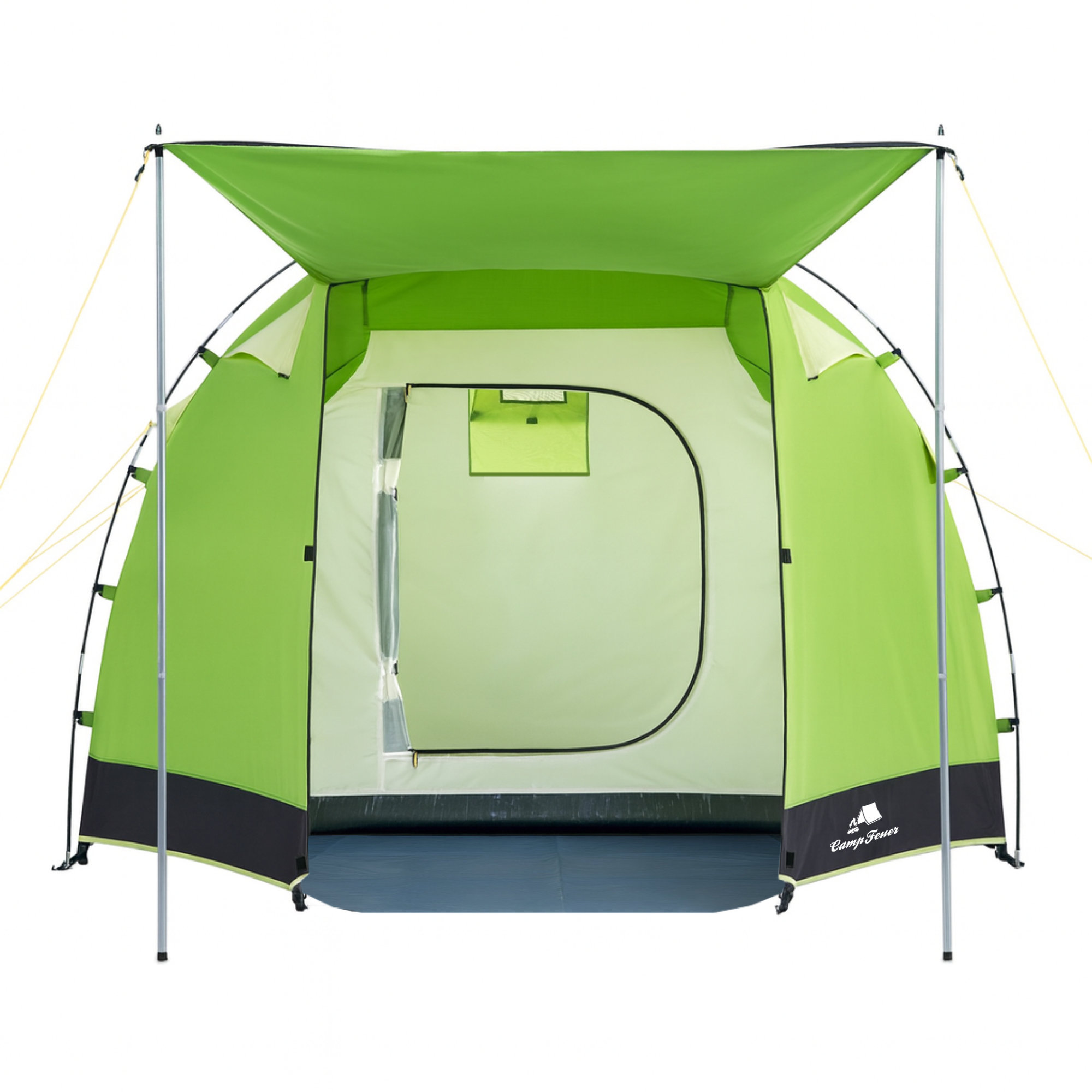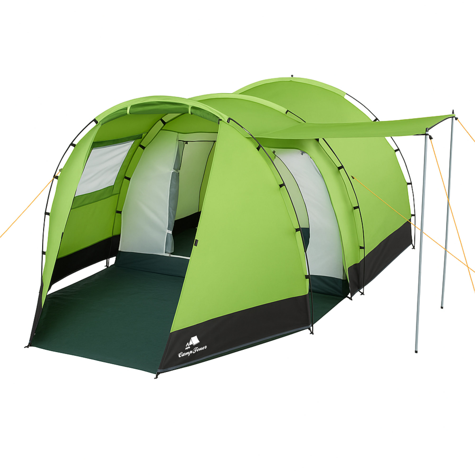 Produktinformationen "CampFeuer Zelt Super+ für 4 Personen, Grün / Schwarz, XXL Tunnelzelt mit 2 Eingängen und Vordach"