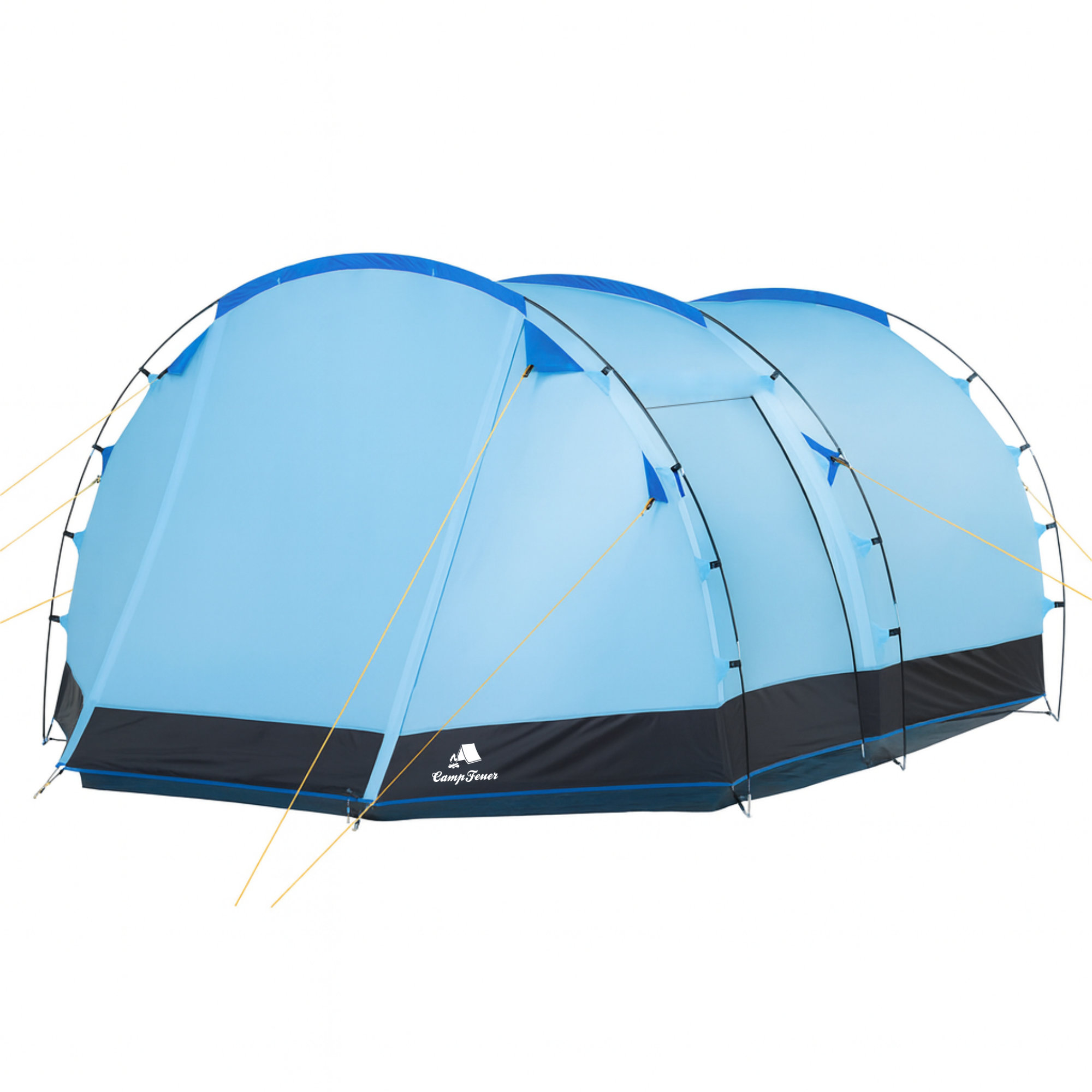 Weiterführende Links zu "CampFeuer Zelt Super+ für 4 Personen, Blau / Schwarz, XXL Tunnelzelt mit 2 Eingängen und Vordach"