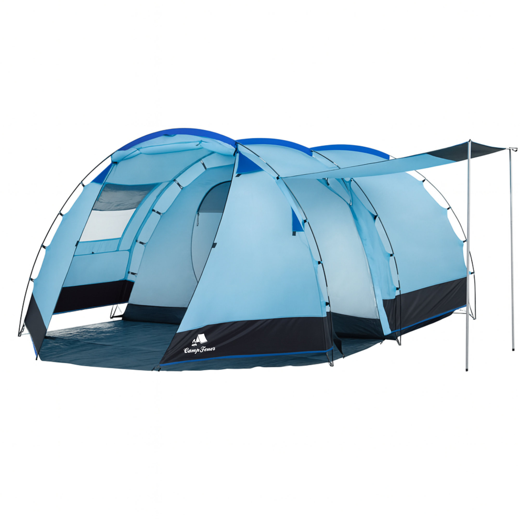CampFeuer Zelt Super+ für 4 Personen, Blau / Schwarz, XXL Tunnelzelt mit 2 Eingängen und Vordach
