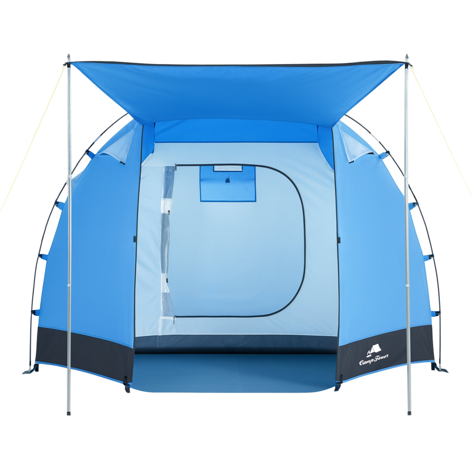 Produktinformationen "CampFeuer Zelt Super+ für 4 Personen, Blau / Schwarz, XXL Tunnelzelt mit 2 Eingängen und Vordach"