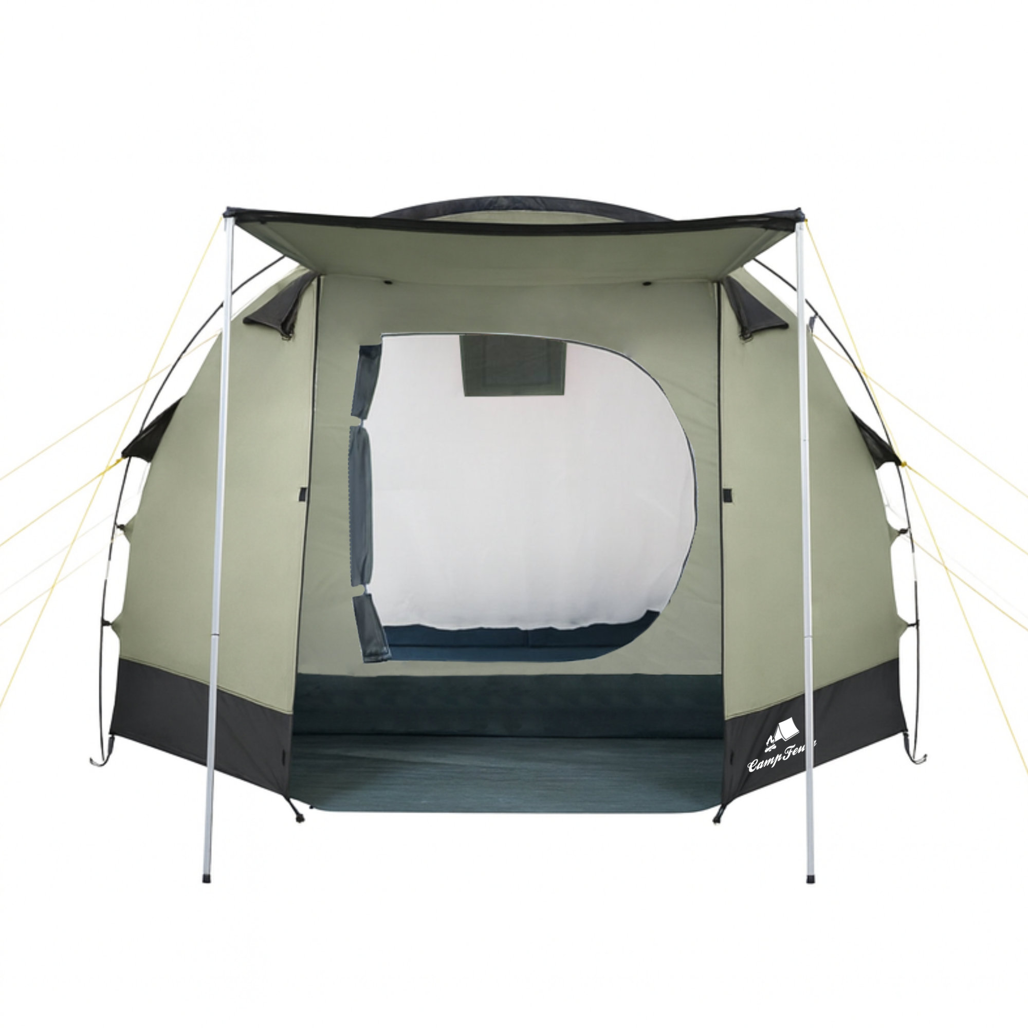 Produktinformationen "CampFeuer Zelt Super+ für 4 Personen, Olivgrün / Schwarz, XXL Tunnelzelt mit 2 Eingängen und Vordach"