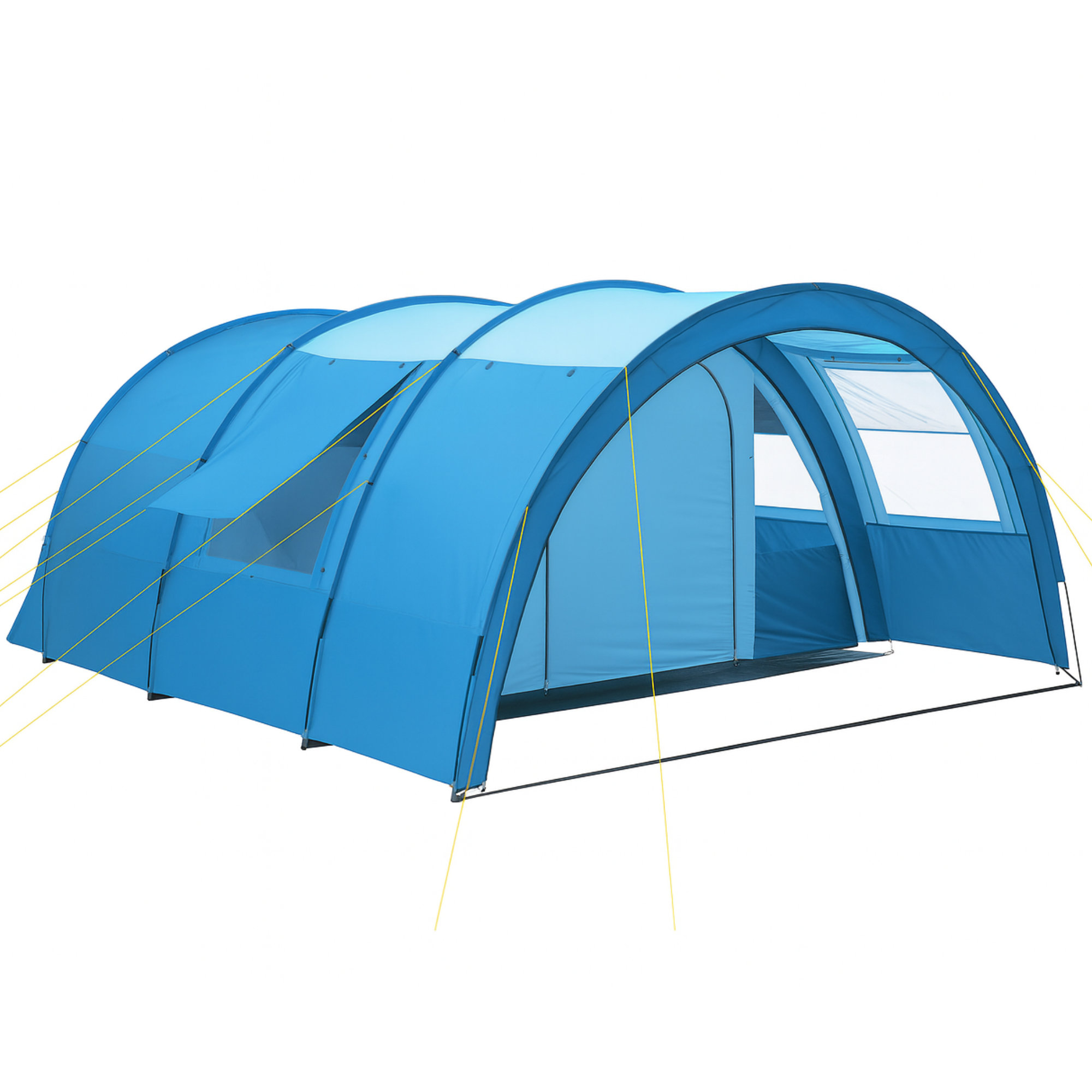 Das großzügige Tunnelzelt wird in einer stabilen Tragetasche geliefert, die den Transport und die Aufbewahrung deutlich erleichtert. So lässt sich das Zelt geordnet verstauen und problemlos im Auto oder Campingmobil mitnehmen.