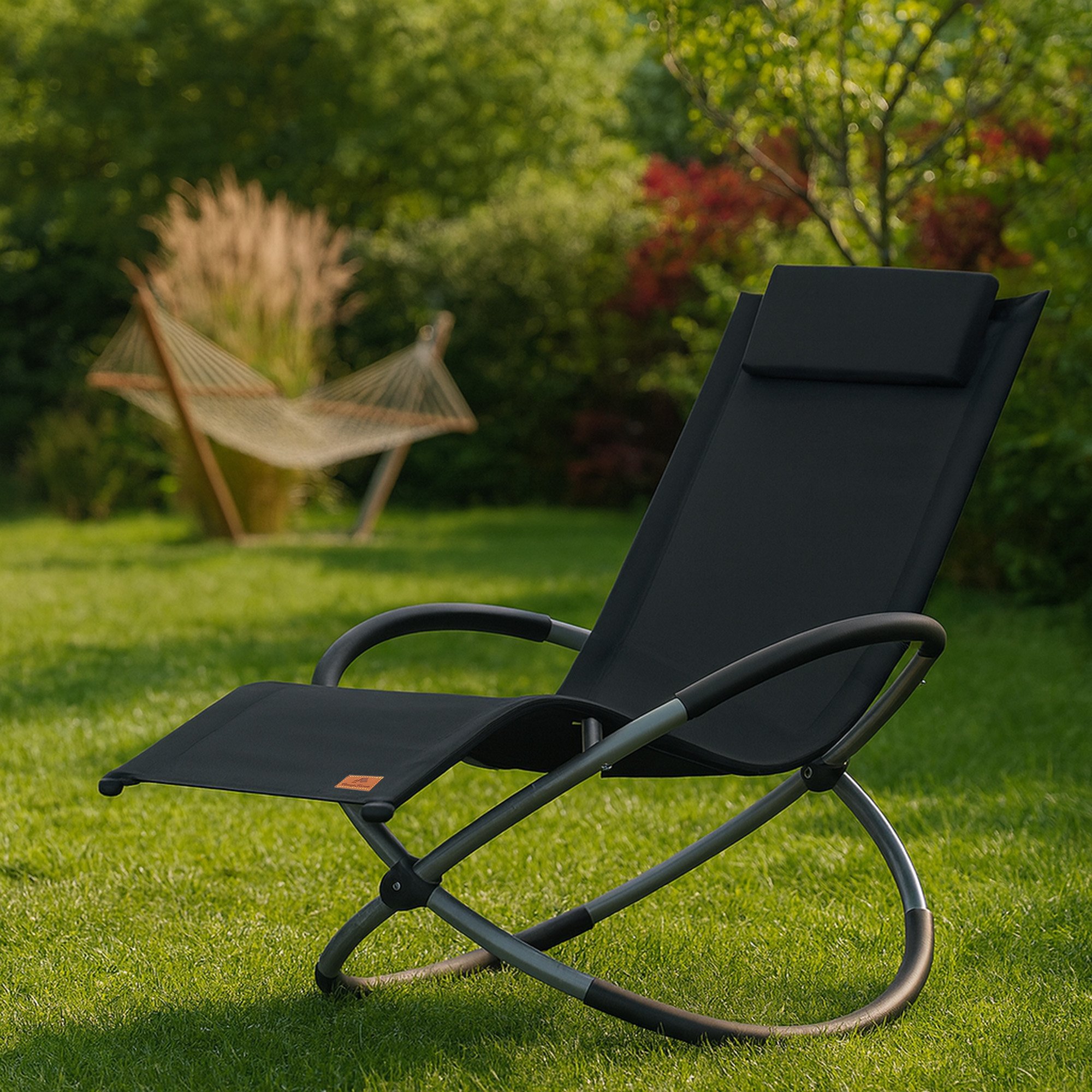 CampFeuer Relaxliege, Schwarz, Gartenliege klappbar Sonnenliege Schaukelsessel Schwungliege