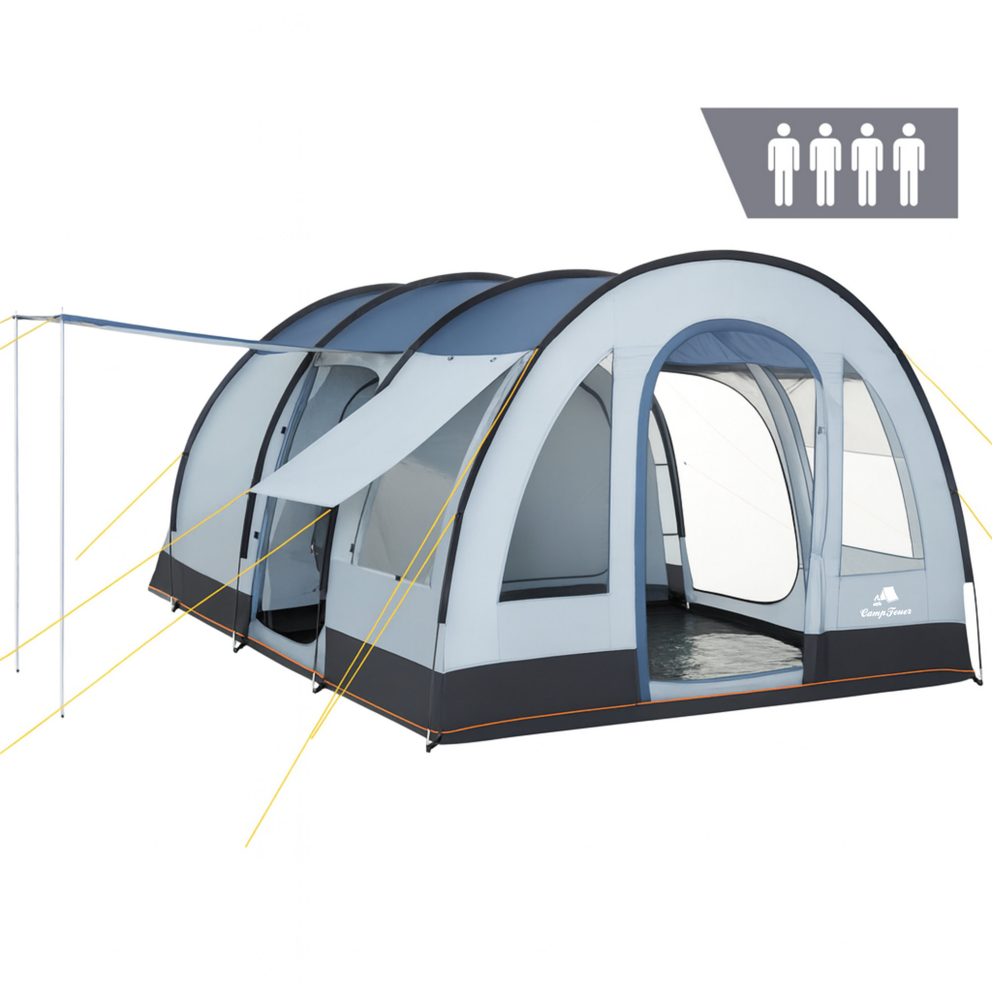 CampFeuer Zelt TunnelX für 4 Personen, Grau/Blau, Tunnelzelt mit 3 Eingängen, 5000 mm Wassersäule